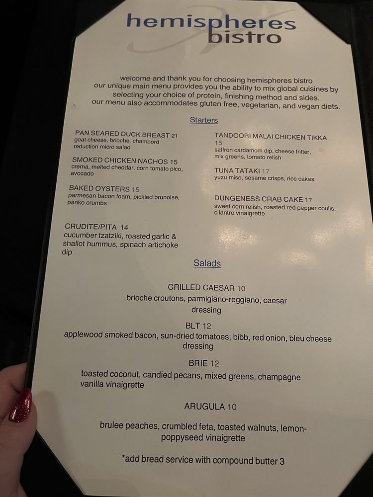 With welcoming staff and a full bar, Hemisphere Bistro is truly a destination for any food lover.